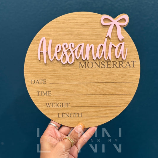Baby Coquette Bow Birth Stats Sign